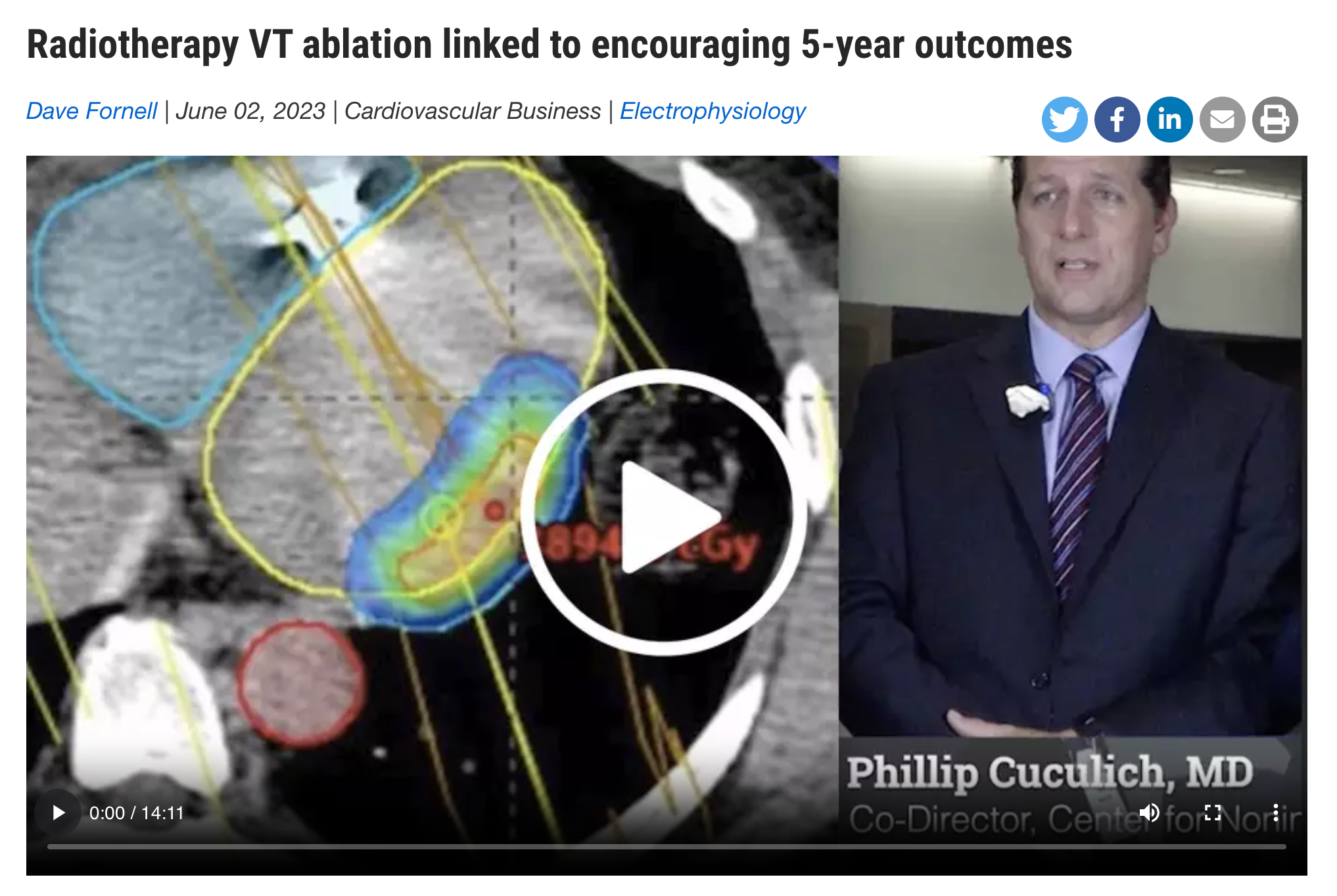 Check out this interesting interview with our External Advisory Board members Phillip Cuculich, MD and Clifford Robinson, MD. They explain their use of radiotherapy VT ablation at the Center for Noninvasive Cardiac Radioablation (CNCR) at Washington University in St. Louis.